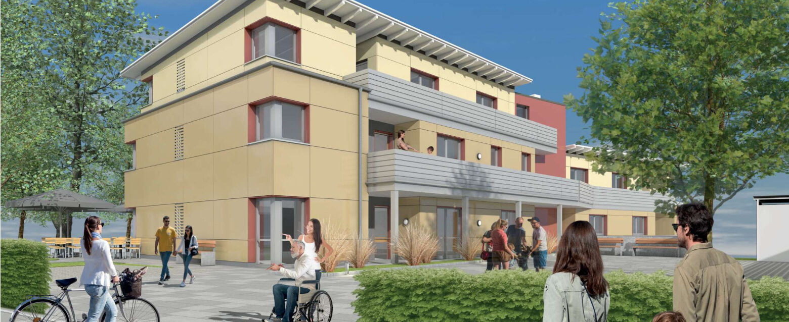 Der VKM Aachen e.V. errichtet auf dem “Kronenberg” in Aachen ein inklusives Wohngebäude, in dem ältere Menschen, junge Leute und Menschen mit Behinderung gemeinsam leben werden. Ein Stadtteiltreff und ein Stadtteilbüro werden das Angebot ergänzen und so zur Entwicklung des gesamten Viertels mit seinen über 3.000 Bewohnern beitragen.